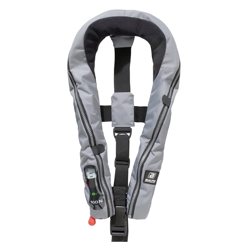 Den har samme ydeevne som den traditionelle skumfyldte orange redningsvest. Den mindre lunge gør den lettere og mere behagelig at have på. Inspektionsvinduet er monteret, så du visuelt kan kontrollere, at de to indikatorer på den automatiske ventil viser grønt, og at redningsvesten er klar til brug. Opdrift 100N. Aftagelig krykkestrop. Compact er den redningsvest, du virkelig ønsker.Fem års garanti.Størrelse: 30-110 kgModel: Unisex