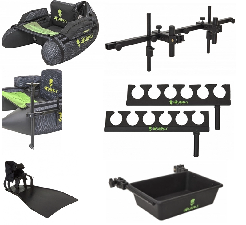 Alt hvad du har brug for i én pakke!Mavebåd: Den perfekte model til mindre spillesteder og hurtige roving-sessioner. Fantastisk til snavsede områder og meget diskret, når du er i vandet. Let og meget nem at manøvrere. Færdig i en camo-fisk farve for ekstra diskretion. Aftagelige velcro-reflekterende sikkerhedsbånd. Indeholder:• Gunki medium lomme (x2) • Reparationssæt • Transportstropper • Fodpumpe • Rodridse • Bæretaske • Reflekterende sikkerhedsbånd (3) Tekniske specifikationer: • Maksimal belastning: 115 kg • Vægt med lommer: 5,4 kg • Oppusteligt sæde med justerbare stropper til ryglænet • Frontstang og sikkerhedsrem • Aftagelige og flytbare sikre lommer • Opbevaring bagpå • Strømlinet V-form • Bærehåndtag • Afkrogningsmåtte med målEkkolodsbeslag 58cm:Passer foran på Gunkis Accessory Bar. Du kan nemt indstille den lodret for perfekt postiton.Gunki Accessory Bar 80cm:Passer nemt og sikkert til ringene på højre eller venstre side af din Gunki mave båd. Dette styrer alt Gunkis flydeknoldtilbehør.Stang Roost Sæt 33,5 cm:Stangholdere til Gunkis Belly Boats. Kan monteres hvor som helst langs Gunkis tilbehørsstangen eller på skruen til tilbehørsstangens ben. Stangholderen har 6 40 mm slidser.Sidebakkeskål 34x9x23cm:Meget praktisk værktøj at have på sin Gunki mavebåd. Passer også til gunkis tilbehørsstang.Short Oar Fenor 24x45cm:Korte finner med store blade, perfekt til at manøvrere præcist og jævnt uden at blive for træt. Designet til dit mavebådsfiskeri, universel pasform. sælges selvfølgelig i par.