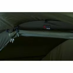 Tovejs lynlåse på hoveddøren gør det muligt at bruge den i en postkassekonfiguration, så du kan fortsætte med at spotte fiskeaktivitet, selv når du sidder fast inde i bivvyen, når vejret tager en tur til det værre . Denne funktion hjælper også med at øge den indre luftgennemstrømning gennem bivvyen, når den kombineres med det store bageste myggenet-dækkede ventilationsvindue. På de lune sommerfiskeridage og -nætter kan frontdørene og siden åbnes helt og spændes tilbage, hvilket giver dig en perfekt panoramaudsigt og et behageligt klima.- Optimeret indvendig plads- 190D 8.000 mm vandtæt stof- Letvægtsramme med to ribber- Fordør i brevkasse-stil- Stor ventilationsåbning/vindue på bagsiden- Oprulningsspids- Aftageligt letvægtsjordplade – To velcro-stænger- Sæt med spændingsstang- Pløkkersæt og etui- Bæretaske inkluderet- Dimensioner: 305 cm x 300 cm x 155 cm – Vægt: 9,5 kg- Transportstørrelse: 115cm x 30cm- To-mands indpakning fås separat (72819)