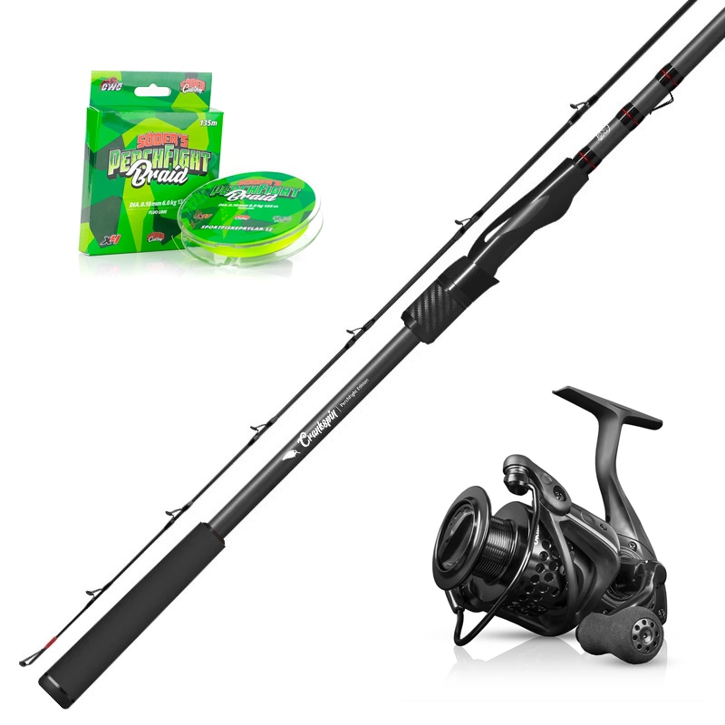 Stang – PerchFight V2Perchfight V2, en opdateret serie af vores meget populære Perchfight stang!Perchfight V2 stangserie har et nyt frisk design, opdateret bunddel med en minimalistisk stil og grafik. Der er også en rød indikator på den øverste løkke for at gøre det nemmere at holde styr på, når du er ude at fiske.Alle disse stænger er udviklet af Nicklas & Henrik hos Söder Sportfiske, de optimale stænger til aborrefiskeri. Der blev brugt en masse tid, tanke og kærlighed på at få disse stænger, lige som vi ville have dem.Designet af os hos Söder sammen med Garry hos True Custom Stænger / American Tackle, takket være det forstærkede 40T japanske Toray-emner og mikrobølger styrer stængerne og holder dens lethed, skarphed og kraft. Disse stænger er en smule lettere end den gamle serie og selvfølgelig 2 stk for nem transport.KrumtapLængde: 7’2”/218 cmKøbevægt: 3-25 gVægt: 132gDenne stang er udviklet til krank og andre hårde lokkemad, men fungerer stadig fint til mindre softbaits. Et lettere og mere fleksibelt emne med en dybere handling sammenlignet med vores twitchrod. Magisk smuk! Twitch & Jigg SpinLængde: 7’3”/220 cmKøbevægt: 5-30 gVægt: 144gDenne stang er udviklet til fiskeri med mindre jerkbaits (som Rapala Shadow Rap) og twitchbaits. En sprød stang med meget rygrad, hvor den mindste bevægelse mærkes, samtidig med at kraften er til et perfekt hooket på en stor aborre. Fungerer rigtig godt til traditionelt softbaits, texas og carolina fiskeri. Denne stang er ret stiv til at kunne rykke/rykke agnen hjem og også fungere godt med tungere jigheads omkring 15-25g, når man er på jagt efter den monsteraborre for at kunne for at tilslutte den ordentligt. Denne stang “vokser” når du bruger den mere og mere, og du vil bemærke, at du lettere kan kroge fisken hver gang, så giv den en chance. Denne stang adskiller sig meget fra andre stænger på markedet, og det tog os næsten 2 år at udvikle emnet, som vi ønskede det.Jigg Light SpinLængde: 7’8”/234 cmKøbevægt: 3-20 gVægt: 127 gDette er en stang udviklet til lettere og mere traditionelt fiskeri efter aborre. En meget sprød stang med en følsom spids til at kunne registrere selv den fineste lille take. En magisk stang, der hurtigt svarer, men bøjer meget, når man kæmper mod fisk. Vi elsker denne stang!VibspinLængde: 7’8”/234 cmKøbevægt: 5-30gVægt: Vibspin er udviklet til fiskeri med vibrering og forskellige bladagn. En stang, der fungerer fantastisk til den slags lokker, blanks-handlingen reagerer godt på vibrationerne, mens den stadig er i stand til at registrere de små følsomme slag, aborre nogle gange gør. En meget interessant stang og en god tilføjelse til serien! Hjul – Okuma Pitch Black FDTilpasset rulle fra Okuma til os hos Söder Sportfiske. Dette er en rigtig fin rulle, der kan klare det meste og er ekstremt problemfri. Pitch Black-serien er baseret på samme teknologi som den klassiske Ceymar-rulle.Multi-disc, japansk olieret filt-træksystem7BB+1RB for ultimativ glathed, 6BB +1RB på størrelse 10Quick-Set anti-reverse rullelejePrecisionsmaskine skåret messing tandhjulKorrosionsbestandigt grafithusStivt, smedet aluminium, sort anodiseret håndtagsdesignLet vægt, TPE håndtagsknopper for komfortPrecision elliptisk gearsystemBearbejdet aluminium, 2-tonet anodiseret spoleTung, solid aluminiumsbøjletrådRESII: Computerbalanceret rotorudligningssystemLinekontrolsystem på spolen for bedre linestøbningAluminiumshåndtag med EVA-knapEkstra alunspole</ ul>Line – Söder PerchFight Braid X4 135m, Fluo Lime – 0,13 mmFarven Fluo Lime er ekstra synlig i de fleste lyse forhold og mod enhver baggrund. PerchFight fletning er en stærk og kraftfuld linje fremstillet af 4 flettede linjer, der giver en gennemsigtig linje ekstra velegnet til støbning af hjul. Det vil selvfølgelig fungere lige så godt med snurrende hjul og til ethvert let grejfiskeri.0,13mm/9kg